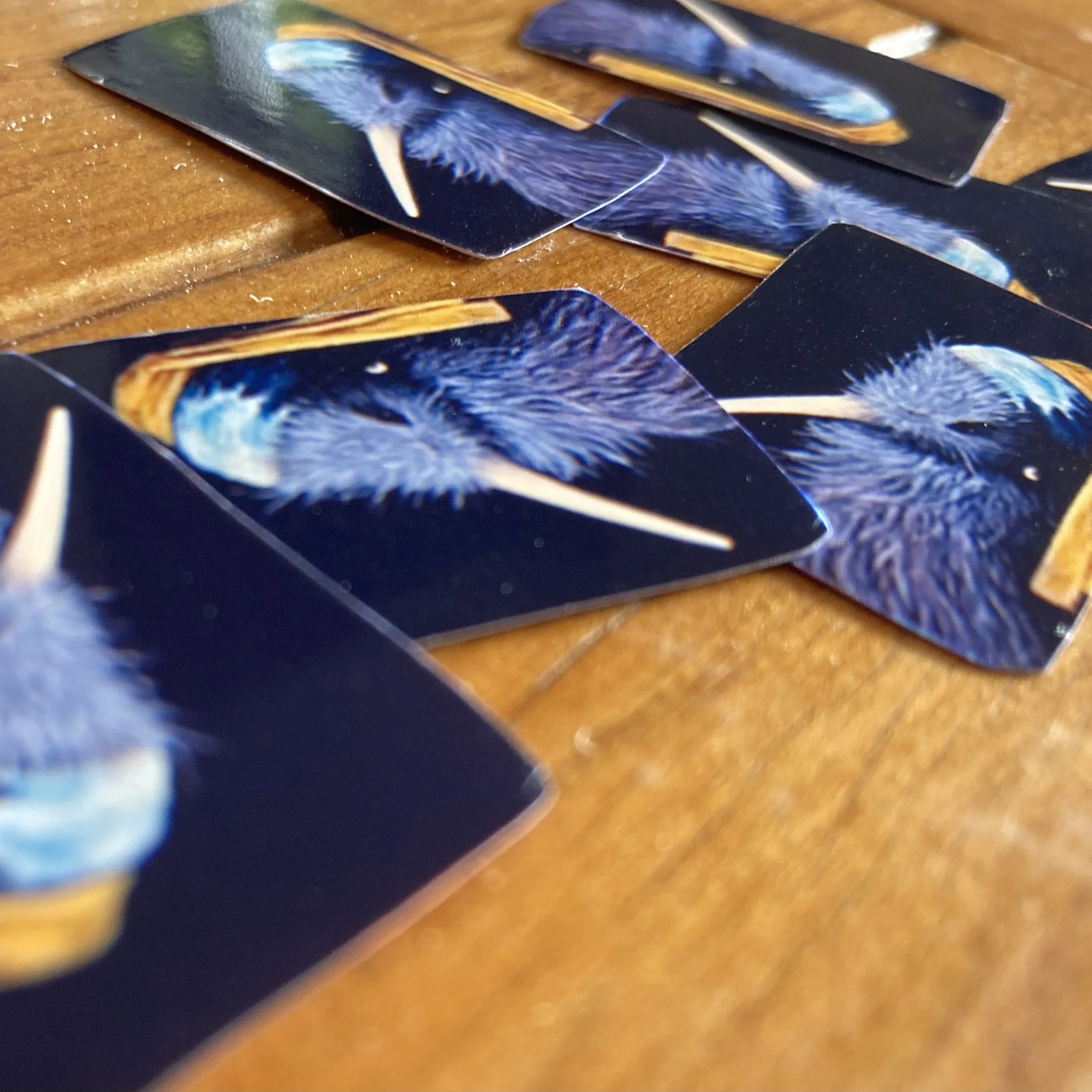 Here are dozens of freshly printed Kiwi with Pearl Earring artworks, each one printed on quality photo paper and carefully cut by hand in my studio. These little artworks are the first step in creating a very special piece — a handmade New Zealand fridge magnet that pays homage to Johannes Vermeer’s Girl with a Pearl Earring, reimagined in true Kiwi style 🥝🐦.