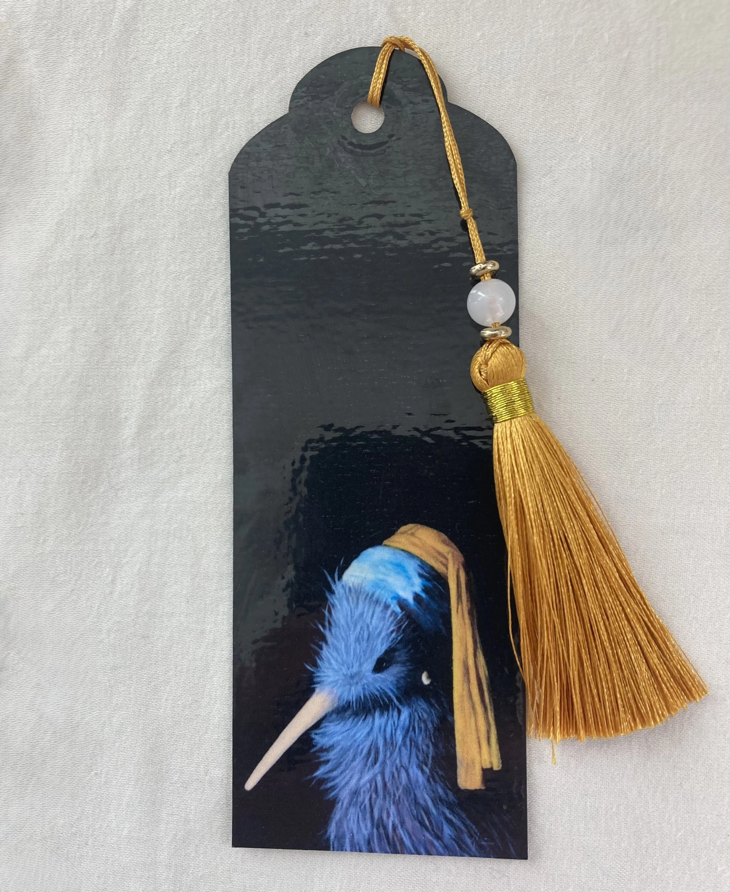 Based on an original painting in acrylic on canvas “Kiwi with pearl earring after Vermeers’ Girl with pearl earring.